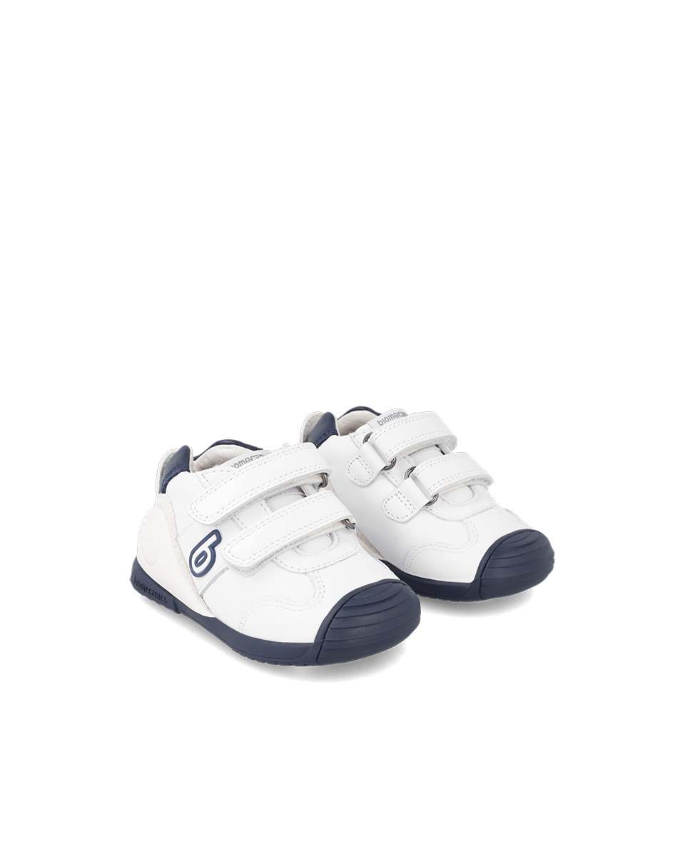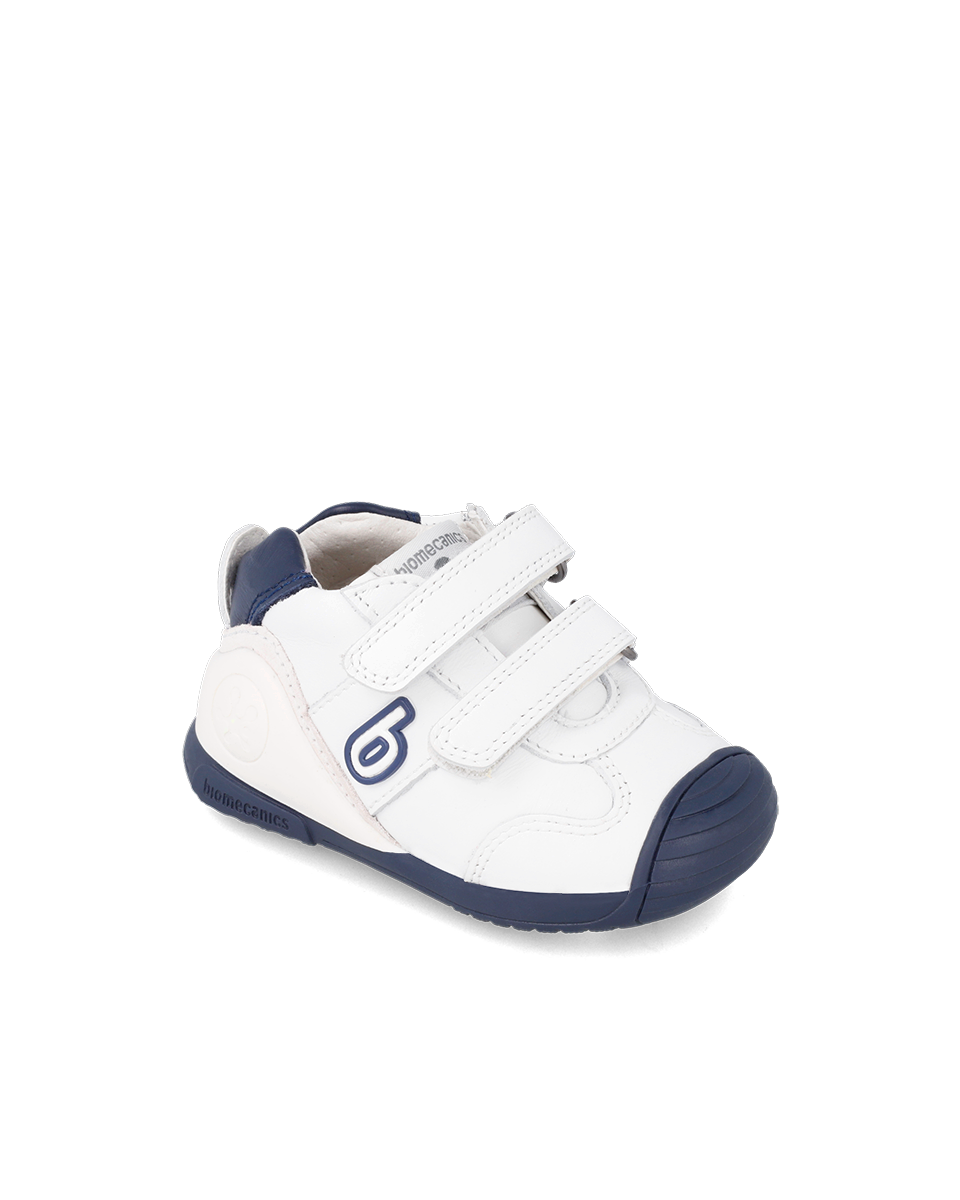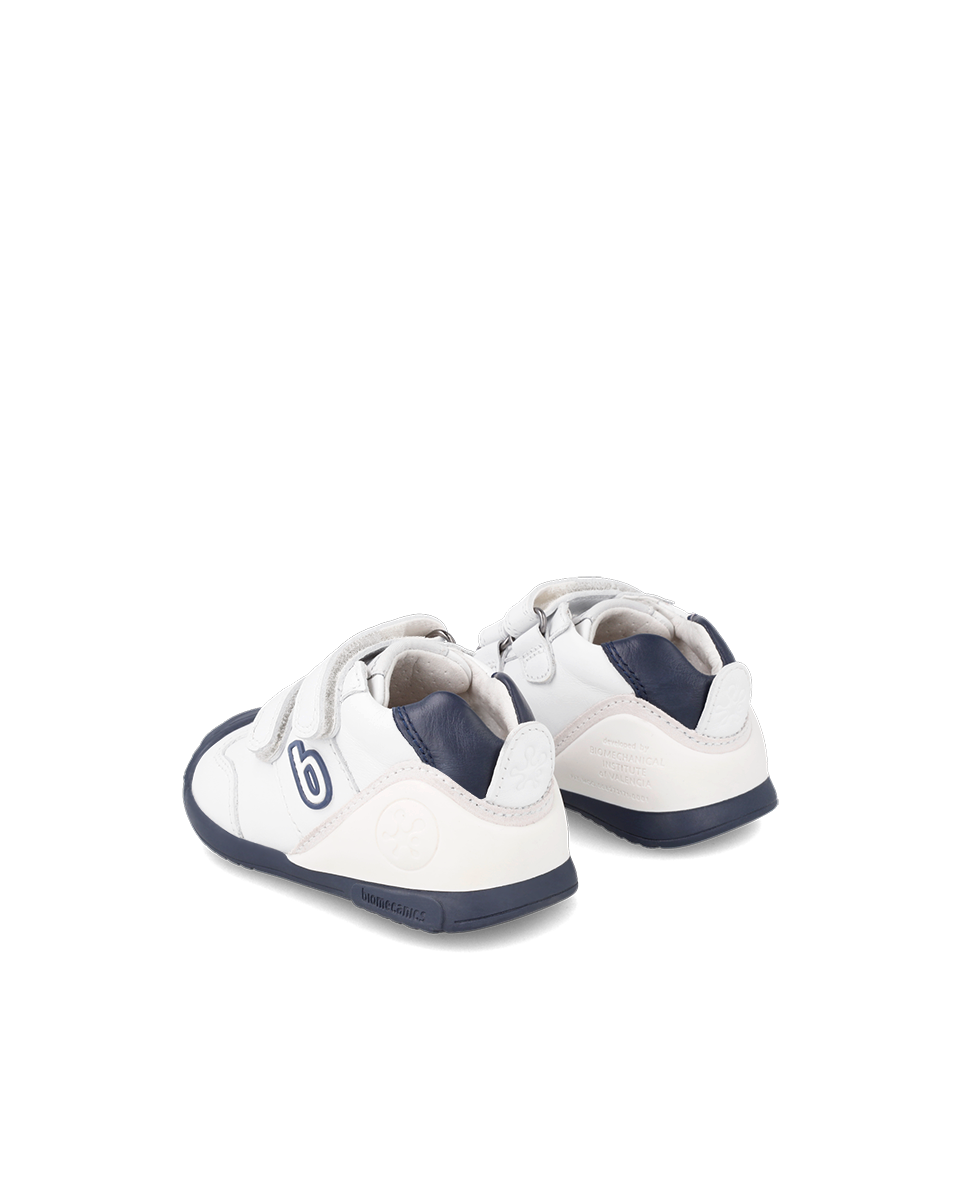 Pantofi Piele Naturală Primii Pași Biomecanics – Alb/Bleumarin
